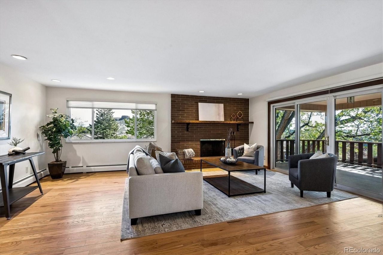 Experience elevated Colorado living in one of Goldens most coveted neighborhoods?Beverly Heights Estates?where breathtaking panoramic views of North and South Table Mountain set the stage for an extraordinary lifestyle. This beautifully maintained ranch-style home with a finished walkout basement seamlessly blends luxury finishes with the relaxed charm of foothills living. Designed for true indoor-outdoor enjoyment, the home features an upper-level covered patio and a fully fenced backyard with a newly replaced concrete patio?perfect for soaking in the stunning mountain vistas year-round. Inside, warm 4 wide plank wood floors flow across the main level, leading to spacious and elegant living and dining areas anchored by cozy wood-burning fireplaces on both levels. The functional kitchen showcases new tile, a new dishwasher, and a breakfast bar perfectly positioned to capture inspiring mountain views. The main-level primary suite offers a serene retreat with a fully updated ensuite bath, complete with a walk-in shower, double sinks, and a custom-organized walk-in closet. Downstairs, the freshly painted and newly carpeted walkout basement expands your living space with a generous family room, two additional bedrooms, a stylishly remodeled full bath, and a versatile bonus room ideal for a home office, gym, or creative studio. Additional highlights include over $60,000 in recent updates, low-maintenance xeriscaped front landscaping with mature trees, an oversized two-car garage, and a backyard complete with sprinkler system and utility shed. Ideally situated at the base of Lookout Mountain, this home offers easy access to downtown Golden, Clear Creek trails, Colorado School of Mines, and some of the areas best hiking, biking, parks, and local shops?bringing the very best of Colorado right outside your door.